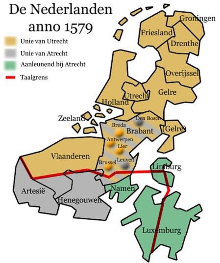 Eind juli 1581 verklaarden een paar gewesten zich in de Acte van Verlatinghe formeel onafhankelijk. Buitenlandse landvoogden zoals de Franse hertog van Anjou en de Engelse graaf van Leicester faalden het gebied goed te besturen. In 1588 besloten de Staten-Generaal het land alleen te besturen. De Republiek der Zeven Verenigde Nederlanden was een feit. De Unie van Utrecht legde een bodem voor de Republiek der Zeven Verenigde Nederlanden. Het grondgebied van deze Republiek besloeg (ongeveer) het huidige Nederland.